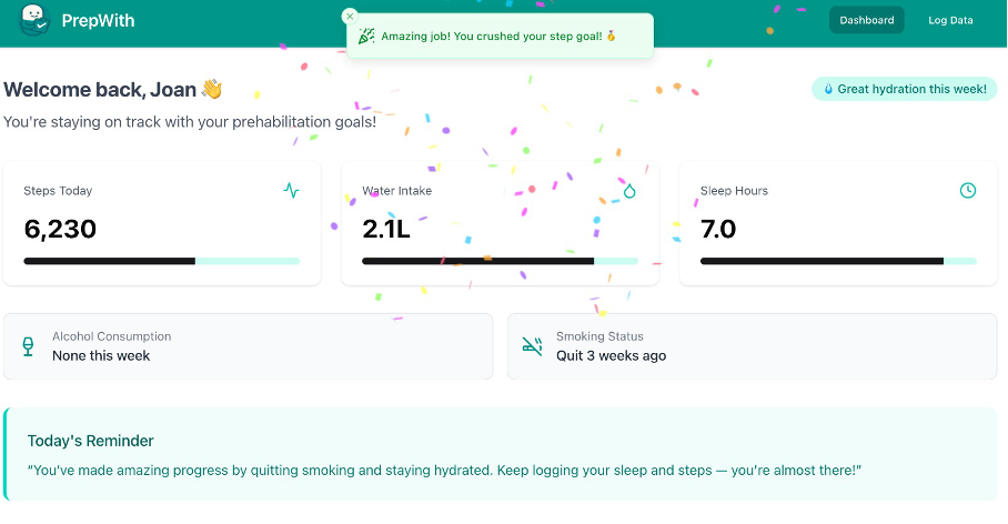 PrepWith is a web-based digital prehabilitation platform designed to support patients in preparing for upcoming medical procedures. Prehabilitation aims to improve physical, behavioral, and psychological readiness before surgery or treatment, thereby reducing complications and supporting recovery.