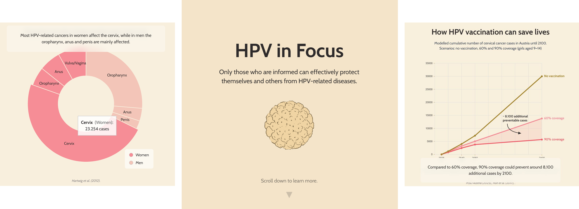 Human papillomaviruses (HPV) are among the most common sexually transmitted infections worldwide and cause several types of cancer. Still, traditional health communication strategies often fail to capture attention or promote understanding [1]. Scrollytelling offers a promising alternative by combining visual storytelling with user-driven interaction. This research builds on insights from data visualization, health literacy, and user experience design to address the challenge of improving digital health communication.